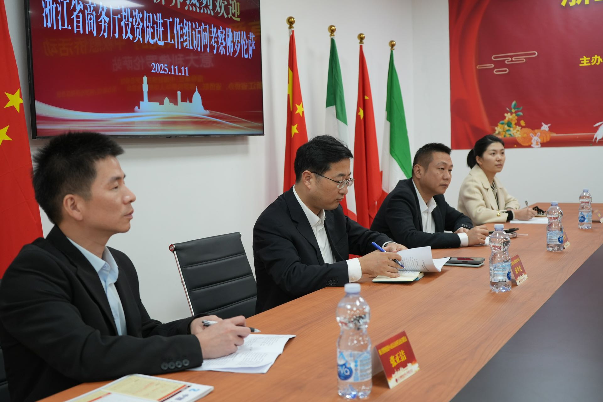 2025年11月11日,由浙江省商务厅投资促进处副处长戴争光担任团长的浙江经贸代表团一行莅临文艺复兴之都佛罗伦萨访问考察,受到了佛罗伦萨华人华侨联合总会的热烈欢迎。双方并举行了座谈交流,就深化中意经贸合作、促进民间友好往来进行了深入探讨。